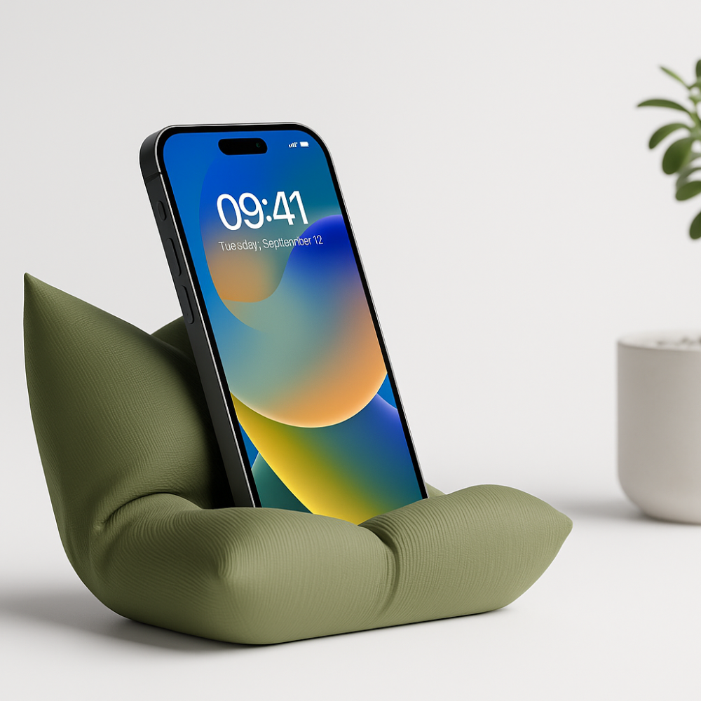 iPhone-Ständer in Kissenform – weich im Look, stark im Halt